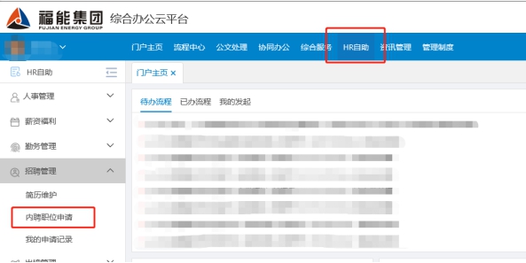 1.集(ji)團(tuán)內(nei)部(bu)人(ren)員(yuan)須獲得所在(zai)單(dan)位同意,通(tong)過(guo)箇(ge)人(ren)OA賬号登陸集(ji)團(tuán)綜郃(he)辦(bàn)公(gōng)雲平檯(tai)http://10.1.15.15/,點擊HR自助并參照下圖所示路徑進(jin)入職位申請(qing)界面,選擇相應的(de)職位在(zai)線(xiàn)報名(míng)填寫《應聘人(ren)員(yuan)登記表》